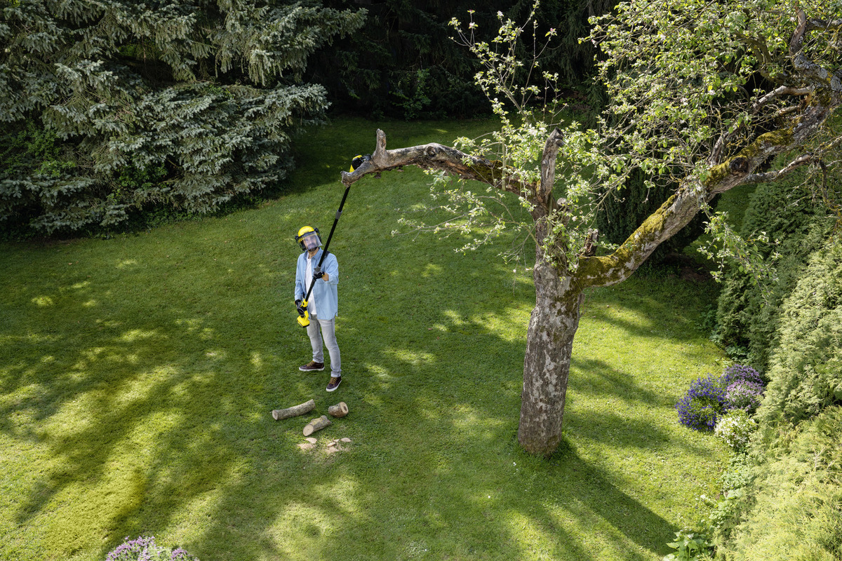 Easily handle pruning with the ProClean PSA 18-20 cordless pole saw. It features a 20cm Oregon® bar, extends up to 2.9m, and delivers 90 cuts per charge. Lightweight at 4.9kg with a shoulder strap and automatic oiling for smooth work. Compatible with ProClean 18V 2.5ah or 5.0ah batteries and includes an LCD battery life display.