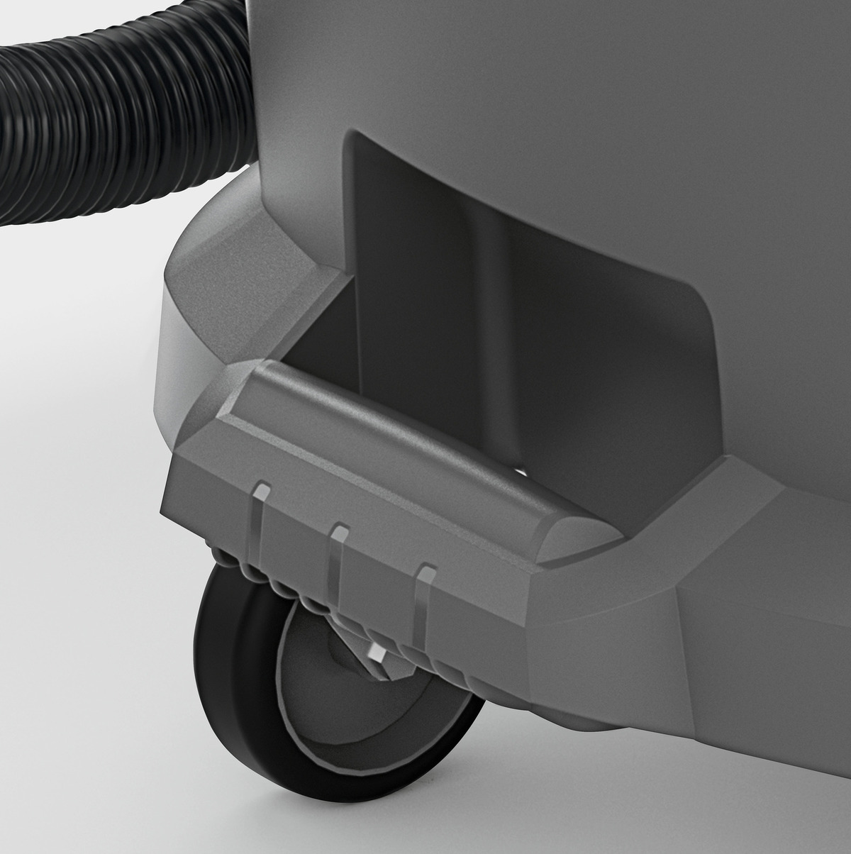 ProClean 40/1 Tact Te L wet and dry vacuum cleaner features a fully automated filter cleaning system that ensures 99.9% filtration efficiency and consistently strong suction. Its large 40-litre container with metal castors handles hazardous fine dust (dust class L), coarse dirt, and liquids. Equipped with a power outlet with auto-start and a full antistatic system, it’s ideal for use with power tools producing fine dust. The included accessory kit—with a 4 m suction hose, stainless steel tubes, and wide floor nozzle—removes dust from floors and machines. All accessories are neatly stored on the device.